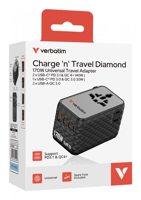 Verbatim 30190 mobiliojo įrenginio kroviklis Universalus Juoda AC Spartusis įkrovimas Vidaus