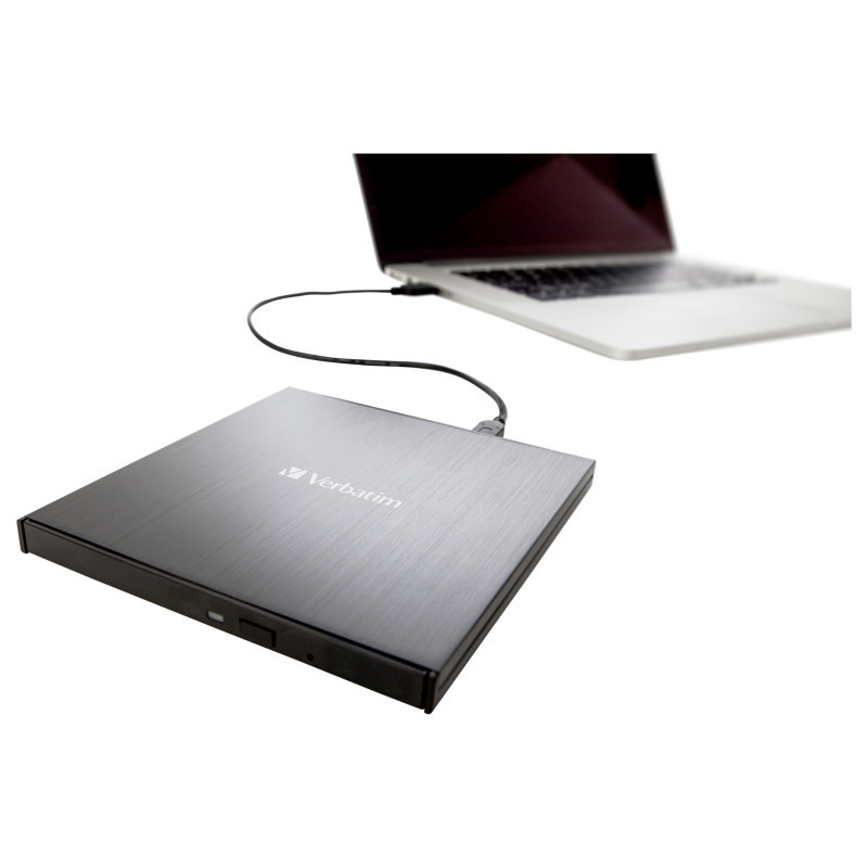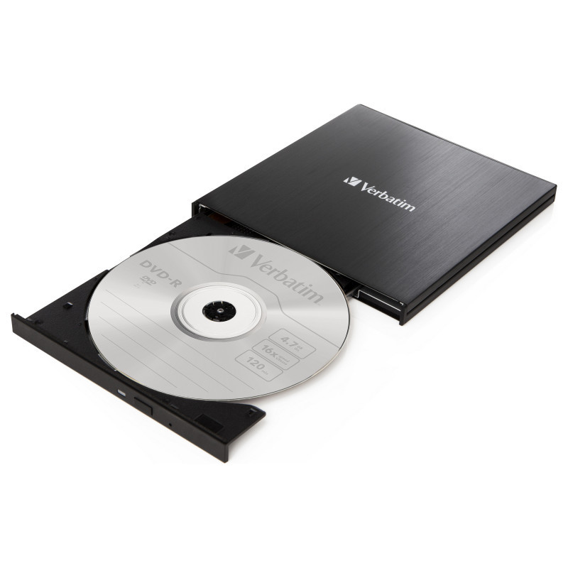 "Verbatim 43886. Product colour: Black, Disc loading type: Tray. Purpose: Desktop/Laptop, Optical drive type: DVD±RW, Interface: USB 3.2 Gen 1 (3.1 Gen 1). CD write speed: 24x, DVD+R write speed: 8x, CD rewrite speed: 24x. CD read speed: 24x, CD-R read speed: 24x, CD-RW read speed: 24x. Width: 133 mm, Depth: 145 mm, Height: 11 mm"\n