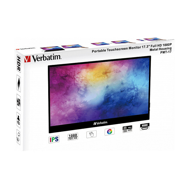 The Verbatim Portable Touchscreen Monitor gives you an extra dimension for your work and play. You can use it as a second screen for your laptop when you are travelling or giving one-on-one presentations, or to provide a large additional display for your phone, tablet, or portable gaming system. Compact and versatile, the portable monitor gives you ultimate flexibility for increased productivity and entertainment while on the go.