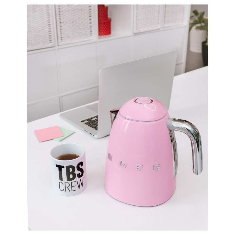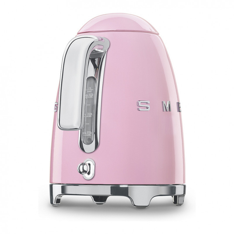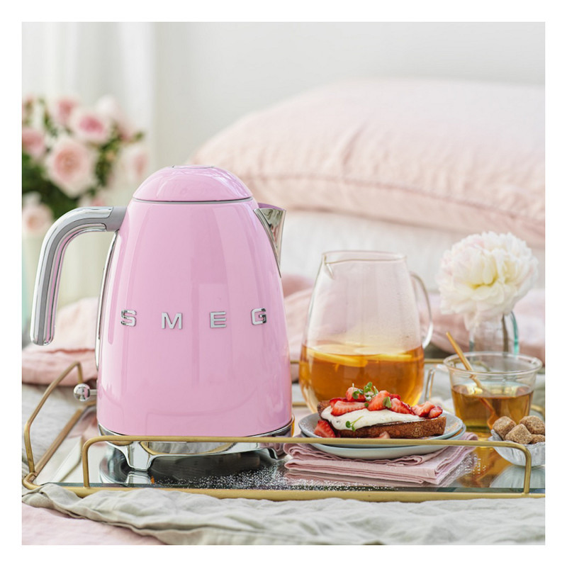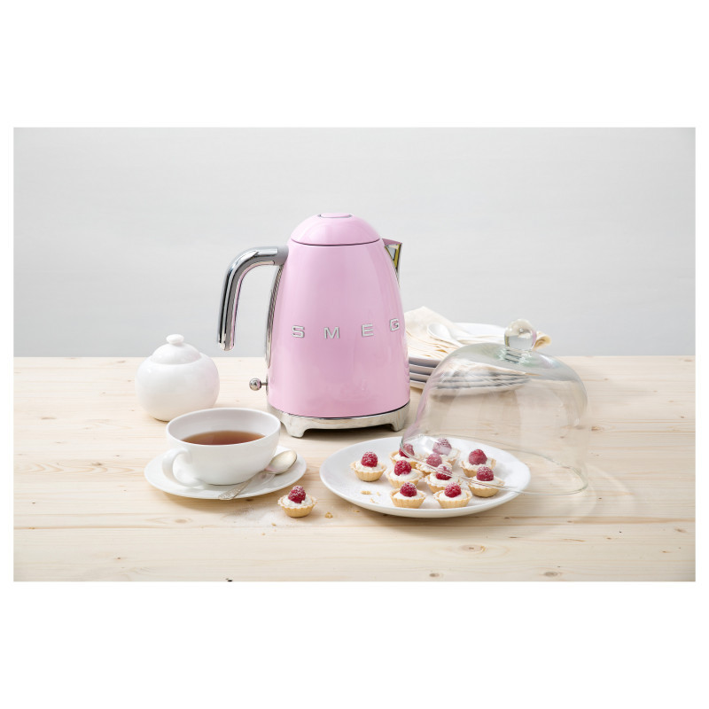 "Smeg 50's Style Kettles KLF03PKEU Pink. Water tank capacity: 1.7 L. Power: 2400 W. Product colour: Pink, Housing material: Stainless steel, Water level indicator, Overheat protection. Cordless. Filtering"\n"Smeg's iconic retro design offers a pop of colour and a premium enamelled finish. With a generous capacity of 1.7 litres, Smeg's KLF03 kettle makes up to 7 cups of tea or coffee. The spout has been specially designed with a balanced weight for an easy pour. The elegant soft opening lid not only looks beautiful but allows for easy filling and ensures that any condensation runs back into the kettle.
