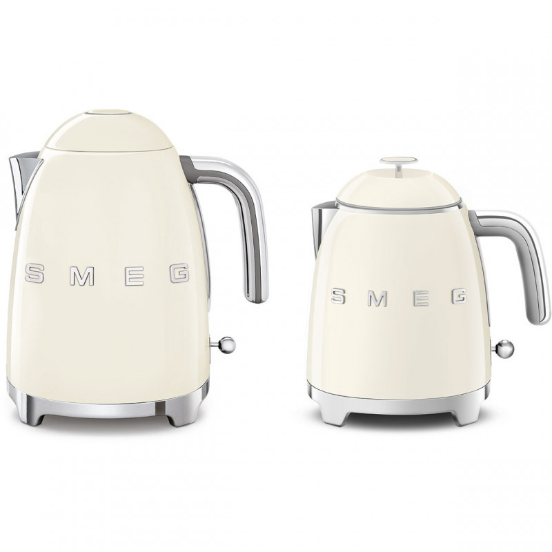 "Smeg 50's Style Kettles KLF05CREU Cream. Water tank capacity: 0.8 L. Power: 1400 W. Product colour: Beige, Housing material: Stainless steel, Filtering"\n"Smeg 50 s style kettle KLF05 not only gives you hot water but also historical 50's charm.