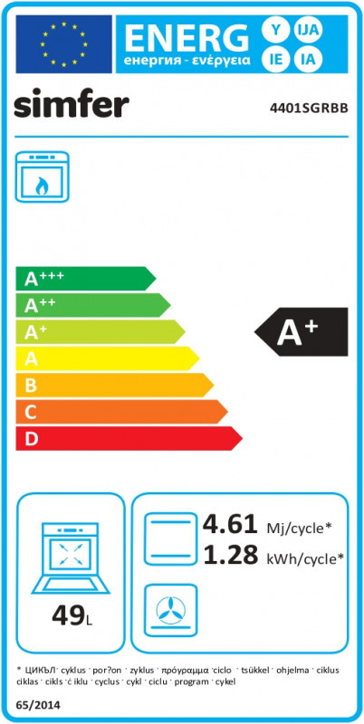 Simfer | Cooker | 4401SGRBB.1 | Hob type Gas | Oven type Gas | White | Width 50 cm | Depth 55 cm | 49 L