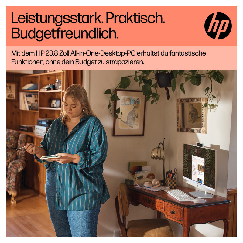 HP 24-cr0401ng All-in-One PC (23.8", Ryzen 5 7520U) – tai kompaktiškas ir modernus „viskas viename“ kompiuteris, skirtas kasdieniam darbui, mokymuisi ir namų naudojimui. Dėl minimalistinio dizaino ir integruoto ekrano šis modelis padeda sutaupyti vietos ir palaikyti tvarkingą darbo aplinką.