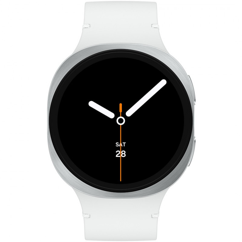 "Samsung Galaxy Watch8 SM-L330NZSAXEF. Display diagonal: 3.81 cm (1.5""), Display technology: AMOLED, Display resolution: 480 x 480 pixels. Processor frequency: 1.6 MHz. RAM capacity: 2 MB, Flash memory: 32 GB. Wi-Fi. GPS (satellite). Battery capacity: 435 mAh. Weight: 34 g. Band material: Silicone, Band colour: White, Band size: M/L. Operating system installed: Wear OS"\n