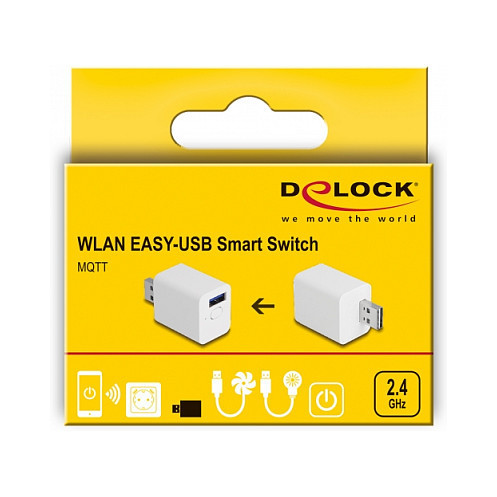 "DeLOCK 11828. Placement supported: Indoor, Product colour: White, Best uses: Home. Connectivity technology: Wired & Wireless, Wireless technology: Wi-Fi, Frequency: 2400 MHz. Maximum current: 2 A. Width: 29.2 mm, Depth: 34.5 mm, Height: 23.4 mm. Country of origin: China"\n"This USB switch by Delock can be controlled via button or WLAN. With the installed Tasmota firmware, the switch can be easily integrated into existing systems for home automation, IoT or M2M. With the help of the web interface, the USB plug can be controlled without having to rely on the cloud or an app.