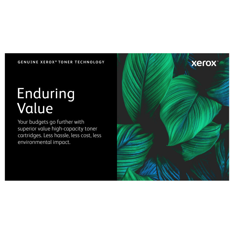 "Xerox Genuine ® VersaLink® C620 Color Printer/C625 Color Multifunction Printer Black Standard capacity Toner Cartridge (8000 Pages) - 006R04616. Black toner page yield: 8000 pages, Printing colours: Black, Quantity per pack: 1 pc(s)"\n"Xerox Genuine Xerox® VersaLink® C620 Color Printer/C625 Color Multifunction Printer Black Standard capacity Toner Cartridge (8000 Pages) - 006R04616 is specially formulated and tested to provide the best image quality and most reliable printing you can count on page after page. Xerox Genuine Supplies and Xerox equipment are made for each other. Accept no imitations. Compatible toners may risk breakdown of Xerox printers and result in poor print quality and weak colours. With over 75 years' experience, Genuine Xerox Supplies are something you can rely on."