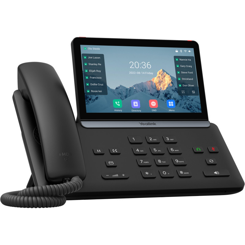 "Yealink -SIP-T87W. Product type: IP Phone, Product colour: Black, Handset type: Wired & Wireless handset. Phonebook capacity: 1000 entries. Volume control: Buttons, Management platform: Yealink Device Management Platform. Display: LCD, Display diagonal: 17.8 cm (7""), Display resolution: 800 x 480 pixels. Voice codecs: G.711a, G.711u, G.723.1, G.726, G.729, G.729A, G.729B, G.729ab"\n"The SIP Phone T87W is the next-gen premium desk phone with fashion-forward design, AI-empowered audio, enhanced system security, smarter UX and a sustainable approach. The fashion-forward appearance, featuring slimmer body, adjustable color touchscreen with invisible hinge, line keys, and red emergency button, adapts to modern workspace and provides comfortable hand feel. Empowered by AI noise cancellation, optimized Acoustic Shield, and enhanced 3W speaker, it provides ultra clear HD audio. The industry-leading Linux 6.1 system and TEE hardware encryption provides enhanced security mechanisms and stronger performance. Built with redesigned UI, Bluetooth 5.0 and Wi-Fi 6, it offers easier access to rich functions like Accessibility Mode, Dark Theme and more flexible connectivity. The adoption of PCRand antimicrobial design, Power-saving mode, adheres to the sustainability goals. "