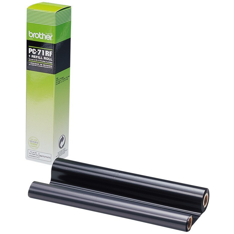 "Brother PC-71RF. Page yield: 144 pages, Printing colours: Black, Compatibility: FAXT72 / FAXT74 / FAXT76 / FAXT78 / FAXT7 Plus / FAXT92 / FAXT94 / FAXT96 / FAXT98 / FAXT102 /.... Width: 48 mm, Depth: 48 mm, Height: 224 mm. Package weight: 212 g. Products per pallet: 2592 pc(s), Pallet gross height: 15.7 cm, Pallet gross weight: 622.8 kg. Country of origin: Japan"\n"Brother is committed to providing exceptional value for customers by utilizing its accumulated technology and know-how to satisfy their needs. The company supplies unique products, for personal use in office and home that incorporate the pleasure of creation with practical functionality."
