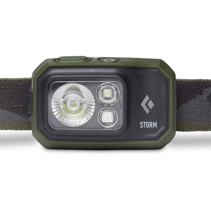 "Black Diamond Storm 450. Flashlight type: Headband flashlight, Product colour: Olive. Waterproof up to: 1 m, International Protection (IP) code: IP67. Luminous flux: 450 lm, Light beam distance (min): 12 m, Light beam distance (max): 120 m. Battery type: AAA, Battery technology: Alkaline/Lithium-Ion (Li-Ion), Battery capacity: 1500 mAh. Weight: 59 g"\n"For the technical consumer who wants the best, brightest, most waterproof, feature rich headlamp to use for fast paced, extreme environment activities. This user also has the need to run the lamp on alkaline batteries if caught away from a power source for a long expedition."