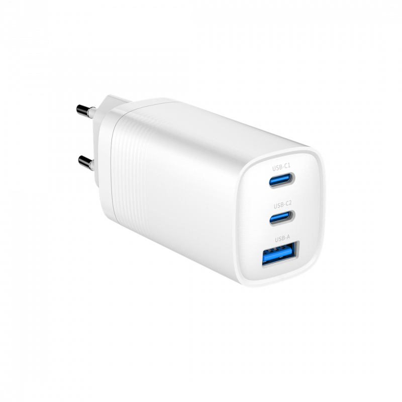 Gembird TA-UC-PDQC65-01-W 3 prievadų 65 W GaN USB PowerDelivery greitas įkroviklis, baltas