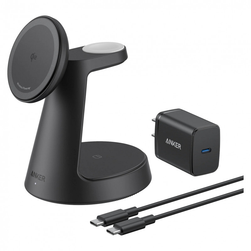 ANKER MagGo 3-in-1 Charging Station kabellose Ladestation schwarz Qi2 15W inkl. zertifiziertes Modul fr Apple Watch
