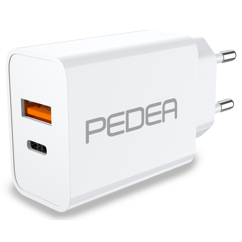 PEDEA 30W USB-C (PD) Schnellladegerät - 2-Ports Mehrfach Handy-Ladegerät mit USB-C und USB-A, weiß