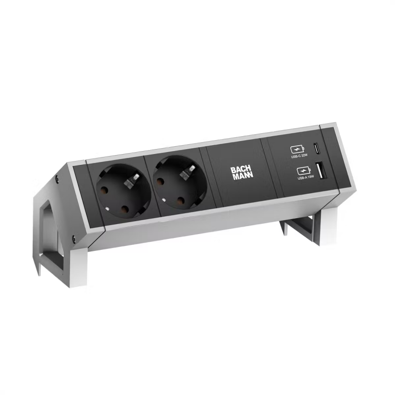 BACHMANN DESK2 2xSchutzkontakt USB A&C USB Charger 22W 0,2m GST18 INOX