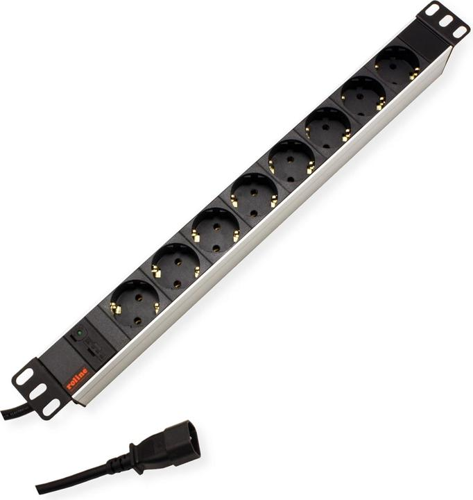 Digitus aliumininė maitinimo juosta su apsauginiu saugikliu, 8 saugios kištukiniai lizdai, 2 m laidas, IEC C14 jungtis