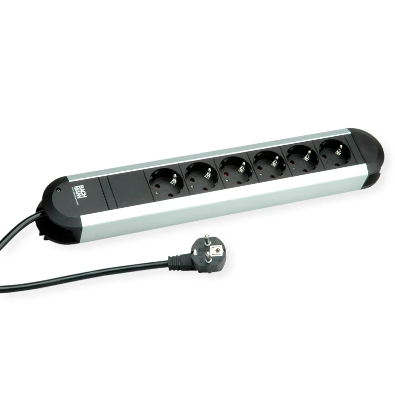 BACHMANN PRIMO RCD Steckdosenleiste 6x Schutzkontakt 1xRCD Schutz Aluminium 2m