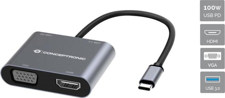 CONCEPTRONIC 4-1 Dock USB-C->HDMI.USB3.0.VGA.100WPD 15cm gr