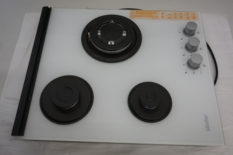 SALE OUT. | Simfer | Hob | H4.305.HGSBB | Gas on glass | Number of burners/cooking zones 3 | Rotary painted inox knobs | White | DAMAGED PACKAGING, SMALL SCRATCHES ON BURNERS