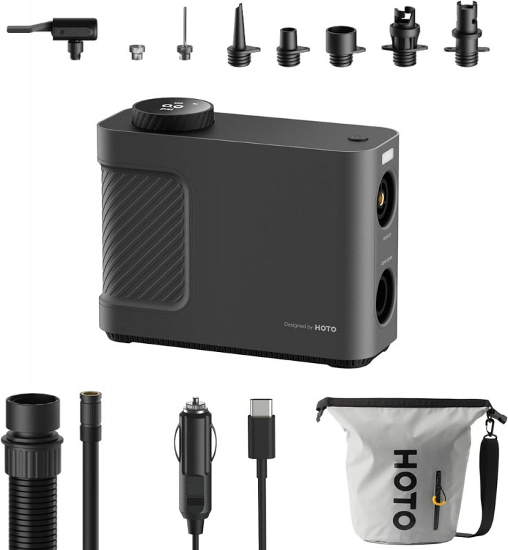Przenośny kompresor, pompka HOTO QWCQB002 (3x 2500 mAh, 150 PSI, 350 L, 12V)