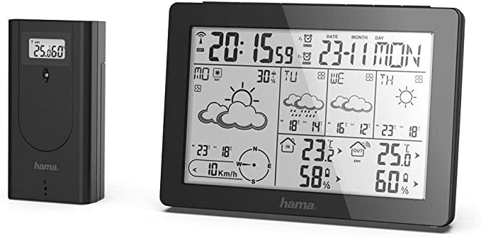 SAVIO Belaidė meteorologinė stotelė, temperatūros ir drėgmės jutiklis, naudojama patalpose, LCD ekranas, laikrodis, data, rankena su magnetu, CT-01/B Black
