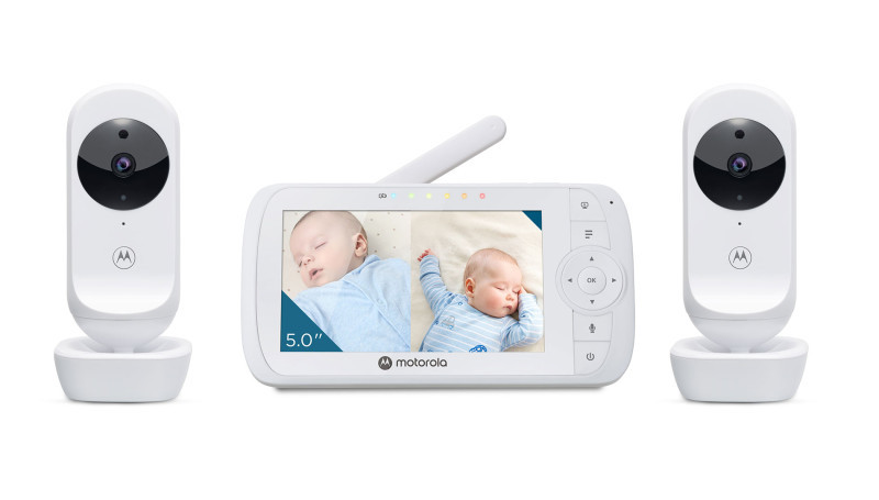 Motorola | Video Baby Monitor - Two camera pack | VM35-2 5.0" | 5.0" diagonal color screen; 5 x preloaded lullabies; Two-way talk; Room temperature monitoring; Infrared night vision; LED sound level indicator; 2.4GHz FHSS wireless technology for in-home viewing; Digital zoom x 2; High sensitivity microphone; Rechargeable parent unit; Secure and private connection; Split-screen viewing | White