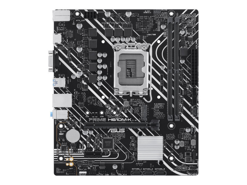 Asus | Processor family Intel H610 | Processor socket 1 x LGA1700 Socket | 2 DIMM slots - DDR5, non-ECC, unbuffered | Supported hard disk drive interfaces SATA-600, 1 x M.2 | Number of SATA connectors 4