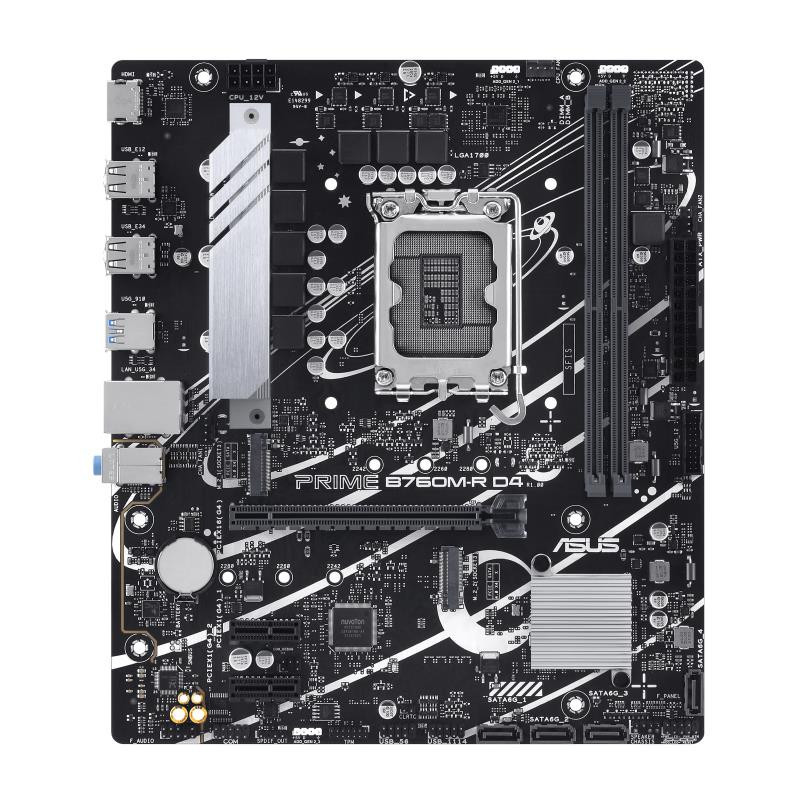 Mainboard|ASUS|Intel B760 Express|LGA1700|Micro-ATX|Memory DDR4|Memory slots 2|2xPCI-Express 4.0 1x|1xPCI-Express 4.0 16x|2xM.2|1x15pin D-sub|1xHDMI|4xUSB 2.0|4xUSB 3.2|1xOptical S/PDIF|3xAudio port|PRIMEB760M-RD4