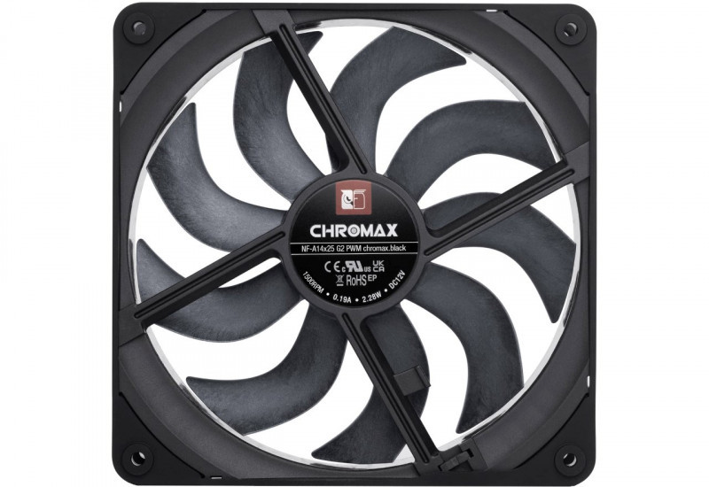 NF-A14x25 G2 PWM chromax.black - naujos kartos 140 mm ventiliatorius (juodas)