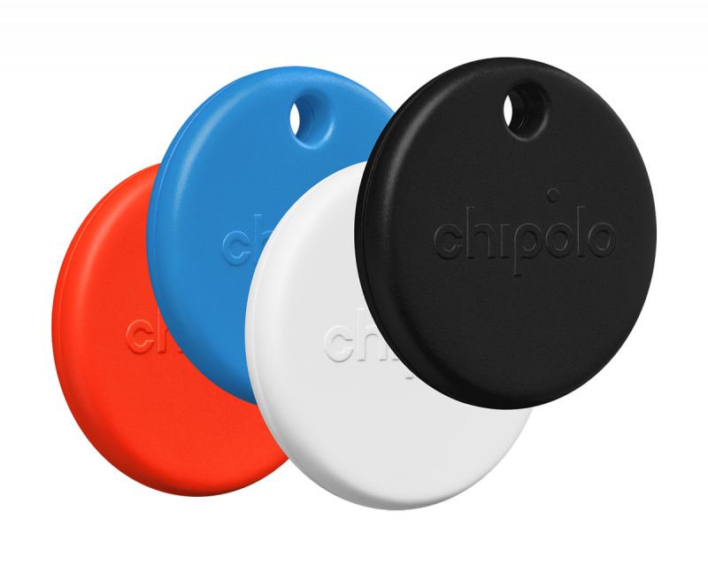 Chipolo POP 4 Pack - Tracking tag compatible with Apple Find My on iPhone (Black, Red, White, Blue)