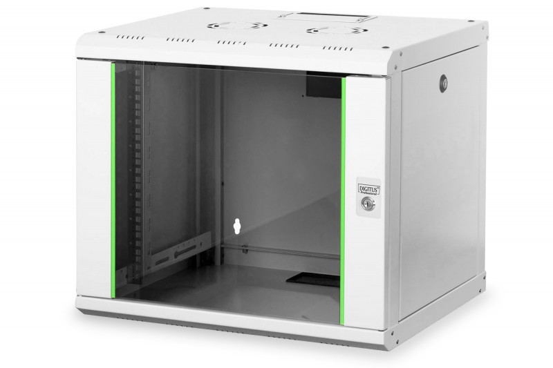 Digitus | Wall Mounting Cabinet | DN-19 09-U | Grey | IP protection class: IP20; Front door: Glass door, single opening; Cabinet type: Wall mounting cabinet; Equipment mounting depth min.-max.: 305-370 mm; Load capacity: 100 kg; Dimensions: 509 x 600 x 450 mm