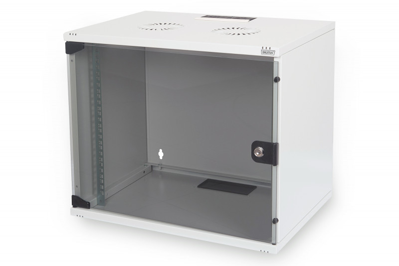 Digitus | 9U wall mounting cabinet | DN-19 09-U-S-1 | Grey | Safety class rating IP20. Lockable safety-glass door. 200° door opening angle. Front door: Glass door, single opening. Unmounted 460x540x400 mm. SOHO