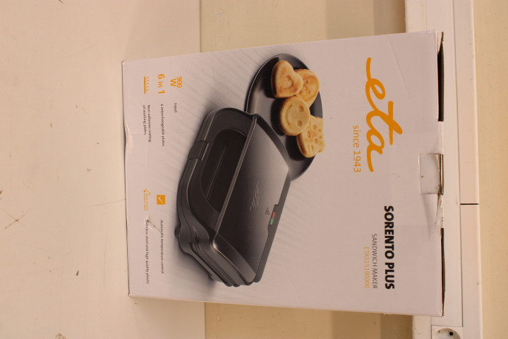 SALE OUT. ETA Sandwich Maker Sorento Plus ETA515190000 ETA 900 W Number of plates 6 Number of pastry 2 Black DAMAGED PACKAGING | ETA | Sandwich Maker | Sorento Plus ETA515190000 | 900 W | Number of plates 6 | Number of pastry 2 | Black | UNPACKED, WITHOUT PANCAKE PLATE