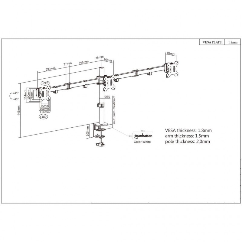 Maclean elektrinis lubų/grindų tvirtinimas, ištraukiamas, 43–88 coliai, VESA 600x400, maks. 60 kg, 100–240 V kintama srovė, 50/60 Hz; MC-125