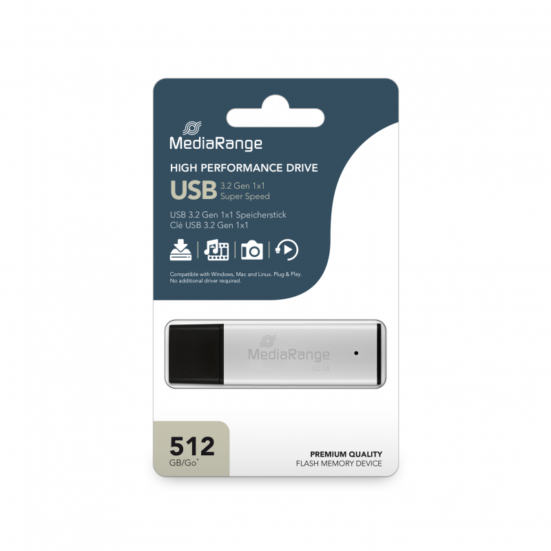 USB Atmintinės STICK MediaRange USB-Stick USB 3.0 high performance 512GB alu