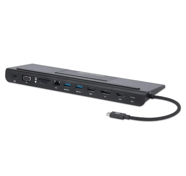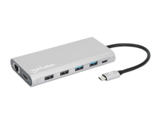 Manhatta 4-Port USB 3.2 Gen 1 Hub, USB-C Male to 4 USB-A Females, 5 Gbps Transfer Speeds, Bus Powered, Black, 164924
