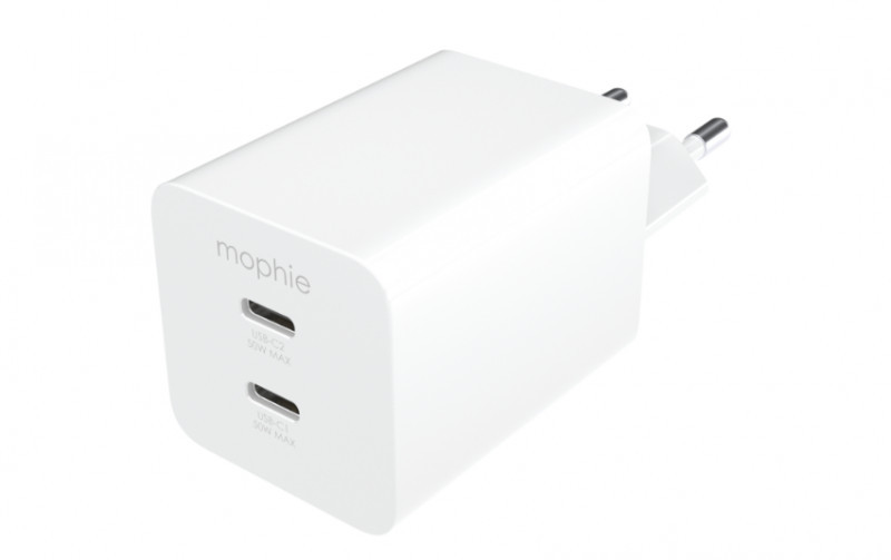 mophie Essentials Power Adapter Dual USB-C PD 50W EU White