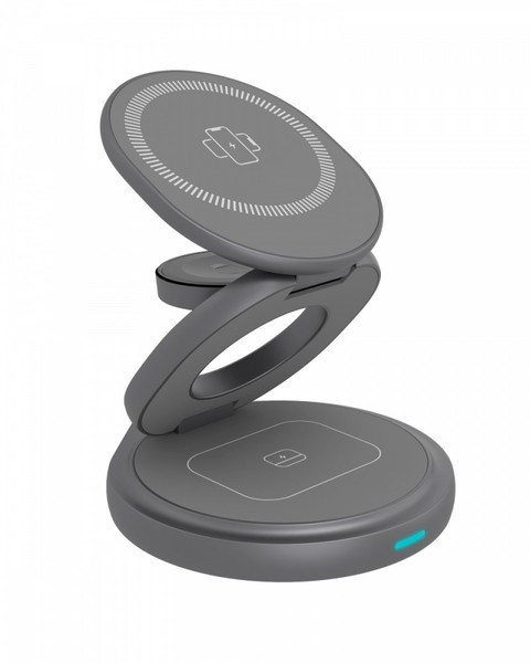 Raidsonic 3 in 1 foldable magnetic charging stand for mobile phone, earpods and smartwatch, Aluminium | Icy Box IB-SH101-CH