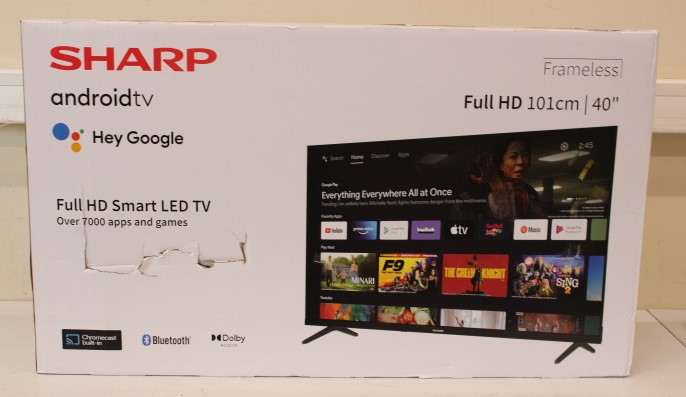 SALE OUT. Sharp 40FH2EA 40" (101cm) Full HD Android Frameless TV, DAMAGED PACKAGING | Sharp | 40FH2EA | 40" (101 cm) | Smart TV | Android TV | FHD | Black | DAMAGED PACKAGING