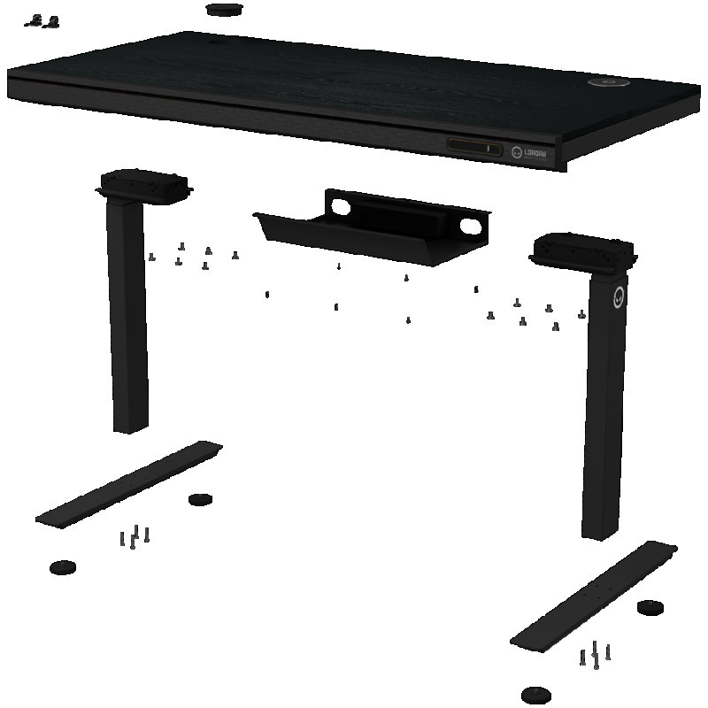 Dual-motor sit/stand adjustable-height gaming desk with wireless charger, RGB lighting, control panel, and USB ports, PB melamine surface tabletop, black.