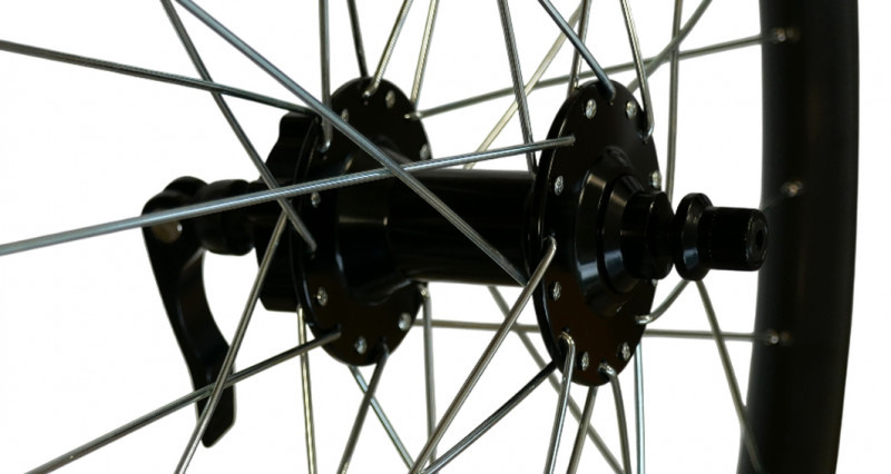 507 x 24, 9 x 100 mm QR, Chosen A4581B stebulė, 2 uždari guoliai, 32H, 6-bolt D-brake, dvigubas ratlankis, juodas