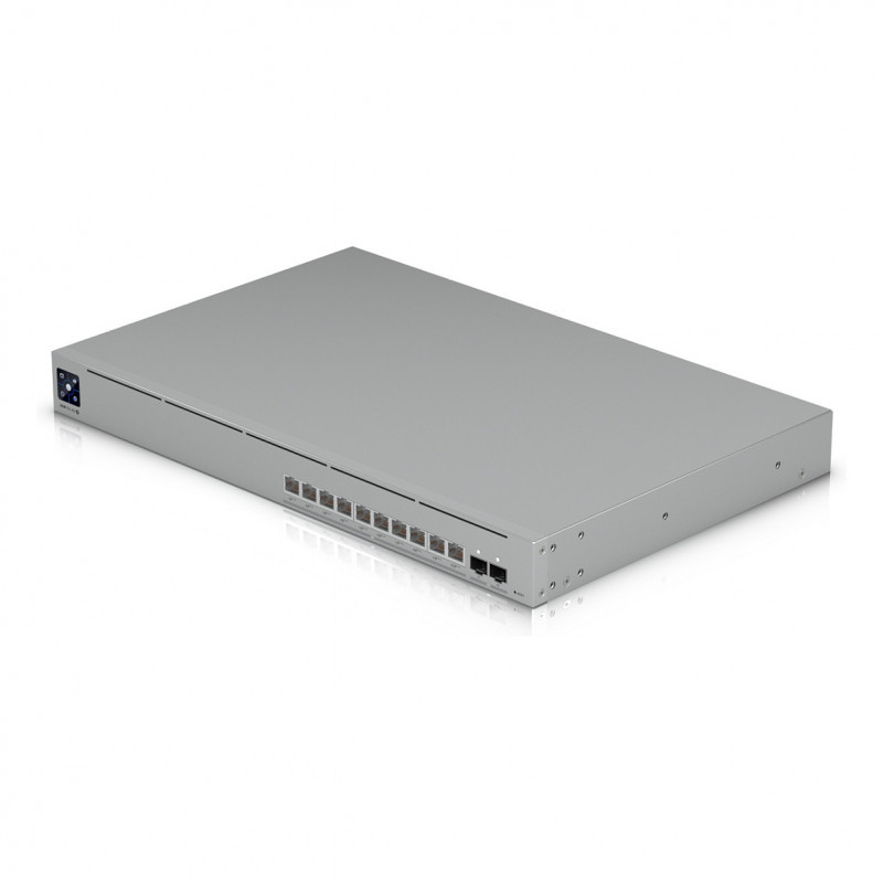 "Ubiquiti UniFi Pro XG 10 PoE. Switch type: Managed, Switch layer: L2/L3. Basic switching RJ-45 Ethernet ports type: 10G Ethernet (100/1000/10000), Basic switching RJ-45 Ethernet ports quantity: 10. MAC address table: 32000 entries, Switching capacity: 240 Gbit/s. Power connector: AC/DC. Power over Ethernet (PoE). Rack mounting, Form factor: 1U"\n"1U, professional-grade 10-port, Layer 3 Etherlighting™ PoE+++ switch with (10) 10 GbE and (2) 10G SFP+ ports."