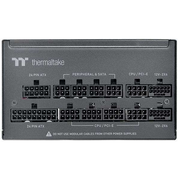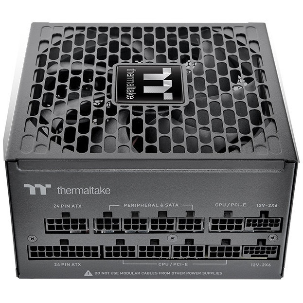 "Thermaltake Toughpower PT 1200W. Total power: 1200 W, AC input voltage: 100 - 240 V, AC input frequency: 50/60 Hz. Motherboard power connector: 24-pin ATX, Motherboard power cable length: 55 cm, SATA power cable length: 450,600,750 mm. Purpose: PC, Power supply unit (PSU) form factor: ATX, 80 PLUS certification: 80 PLUS Platinum. Product colour: Black, Cooling type: Active, Fan diameter: 13.5 cm. Safety: CE/UKCA/FCC/ICES/CB/TUV/cTUVus/LVD/CCC/BSMI/ S-MARK/EAC/RCM"\n"The Toughpower PT 1200W Platinum is ATX 3.1 compatible, 80 PLUS Platinum certified, and supports native PCIe Gen 5.1 (12+4pin) for next-gen GPU power. Delivers 1200W continuous output at 40°C.