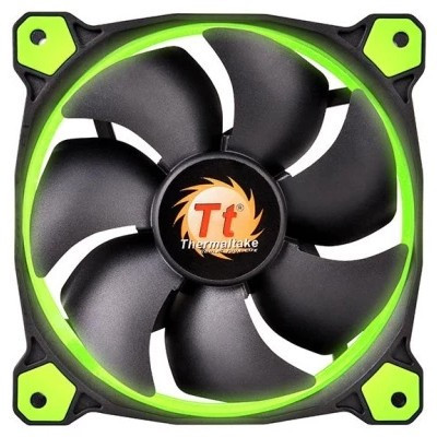 "Thermaltake Riing 12. Type: Fan, Fan diameter: 12 cm, Rotational speed (min): 1000 RPM, Rotational speed (max): 1500 RPM, Maximum air pressure: 2.01 mmH2O. Voltage: 12 V. Width: 120 mm, Depth: 120 mm, Height: 25 mm. Product colour: Black, Green"\n"Riing 12 High Static Pressure LED Radiator Fan