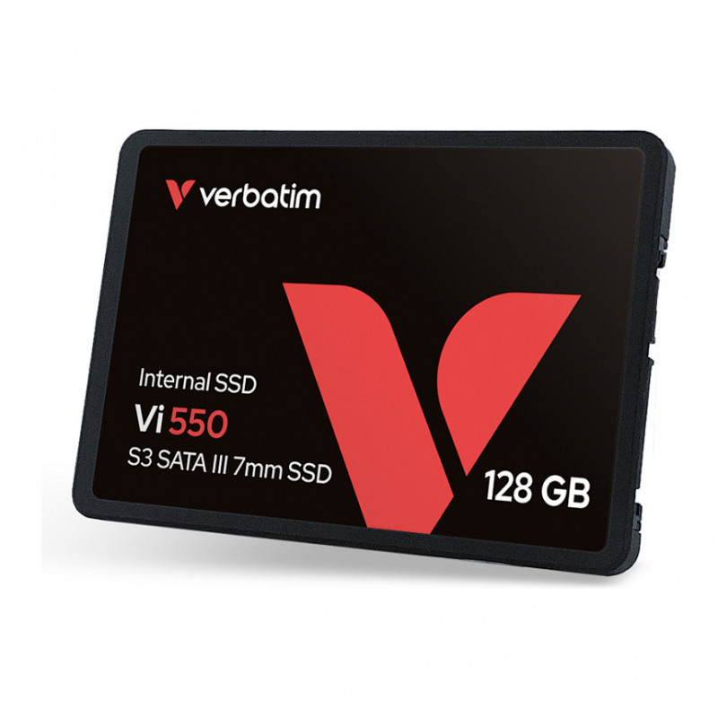 "Verbatim Vi550 S3 SSD 128GB. SSD capacity: 128 GB, SSD form factor: 2.5"", Read speed: 520 MB/s, Write speed: 430 MB/s, Data transfer rate: 6 Gbit/s, Component for: PC/Laptop"\n"Verbatim 2.5'' SATA III 7mm solid state drives can revitalise the performance of your system. Using the latest 3D NAND technology they offer the perfect way to upgrade from either hard drive or an older SSD. The Vi550 has a superior controller for increased reliability, larger capacities and faster read/write speeds.