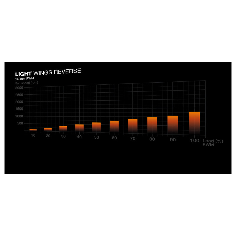 Light Wings 140mm PWM Reverse Black offers impressive illumination for a vibrant unique look, strong performance and quiet operation with efficient cooling.