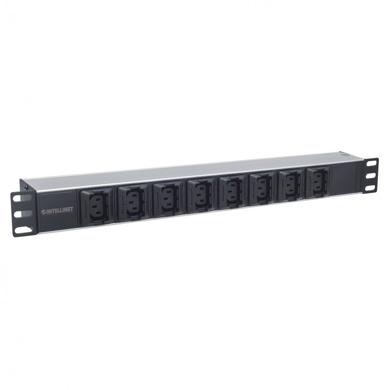 "Intellinet 19"" 1U Rackmount Anti-Shedding 8-Output C13 Power Distribution Unit (PDU) with Removable Power Cable and Rear C20 Input. Rack capacity: 1U, Product colour: Black, Silver. AC outlets quantity: 8 AC outlet(s), AC outlet types: C13 coupler, Input connection type: IEC320 C14. Cable length: 2 m. Nominal input voltage: 110 - 250 V, Maximum current: 16 A. Compliance certificates: UL"\n"Our new 19""; rackmountable PDU range puts Intellinet Network Solutions innovation and practicality on display. This comprehensive line offers a wide selection of tools to protect your valuable I.T. equipment. An integrated, removable cable plugs conveniently into the rear C20 input of the unit."