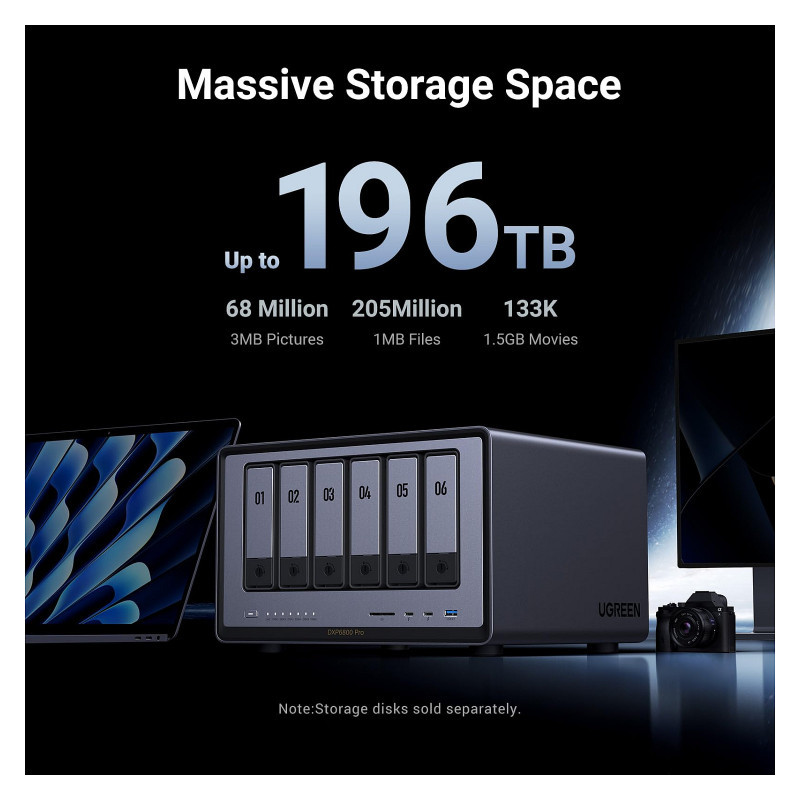 "Ugreen NASync DXP6800 Pro. Type: NAS. Chassis type: Compact. Device class: Home & Home Office. Processor family: Intel® Core™ i5, Processor model: i5-1235U. Internal memory: 8 GB, Internal memory type: DDR5. Total installed storage capacity: 0 TB. Operating system installed: UGOS Pro"\n