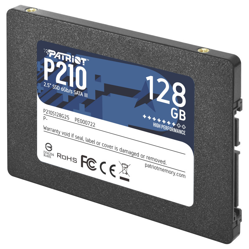 "Patriot Memory P210. SSD capacity: 128 GB, SSD form factor: 2.5"", Read speed: 450 MB/s, Write speed: 430 MB/s, Component for: PC/Laptop"\n"Patriot's next generation 2.5"" SATA III, P210 SSD, is designed with the latest SATA 3 controller, capable of delivering capacities of up to 2TB. This cost-effective solid-state drive is great for condensing more data into a smaller space, providing you with the technology to easily store everything you need. Patriot’s P210 improves your system's performance with more storage than ever.
