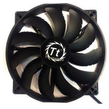 "Thermaltake Pure 20. Type: Fan, Fan diameter: 20 cm, Rotational speed (max): 800 RPM, Maximum air pressure: 0.996 mmH2O, Bearing type: Sleeve bearing. Voltage: 12 V. Width: 200 mm, Depth: 200 mm, Height: 30 mm. Product colour: Black"\n"Pure 20 DC Fan