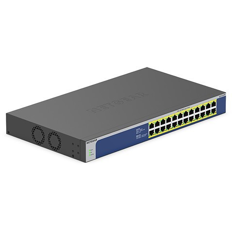 The NETGEAR Gigabit Unmanaged Switch series helps your business cost-effectively expand your network to Gigabit speeds and higher port counts. The GS524PP joins the series and offers 24 PoE+ ports to power high-power PoE devices. With a total PoE power budget of 300W, deploy denser PoE+ devices to a single switch rather than multiple.