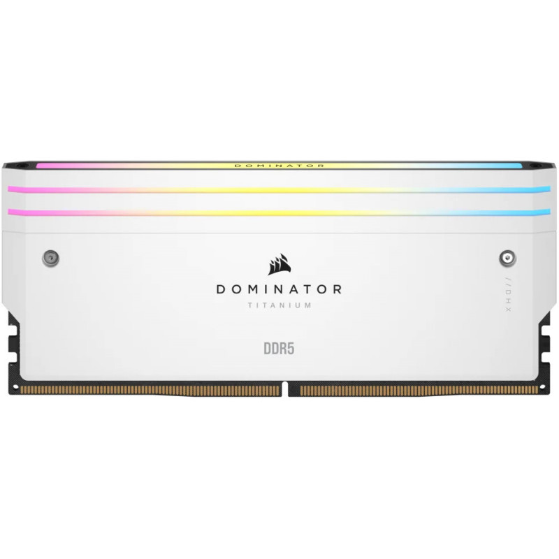 "Corsair Dominator Titanium . Component for: PC, Internal memory: 32 GB, Memory layout (modules x size): 2 x 16 GB, Internal memory type: DDR5, Memory clock speed: 7000 MHz, Memory form factor: 288-pin DIMM, CAS latency: 40, Product colour: White"\n"CORSAIR DOMINATOR TITANIUM RGB DDR5 Memory combines clean, refined styling with superior die-cast aluminum construction and advanced lighting design for a premium memory experience. Optimized for Intel® systems.